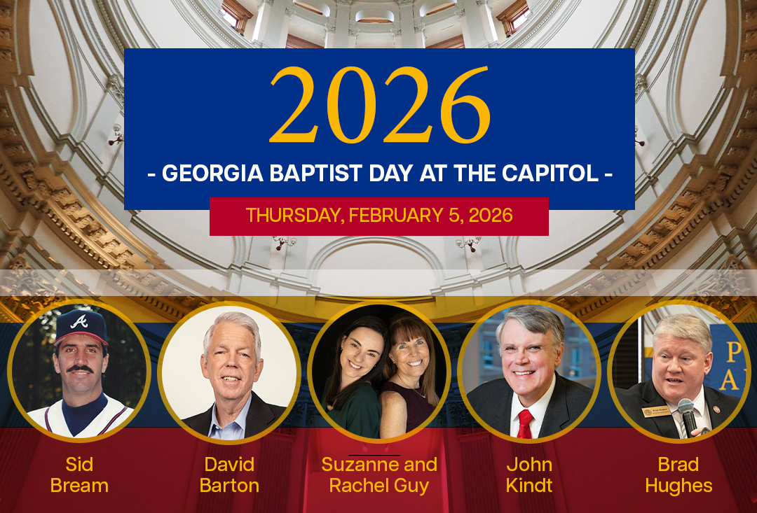Join us for the Georgia Baptist Day at the Capitol, featuring the Legislative Prayer Breakfast and lunch with insights from legislators and policy experts. Take part in a Capitol tour and connect with leaders focused on advancing the gospel. Invite state officials, pastors, and ministry leaders to register. Meals are $15 each, with no cost for state leaders.